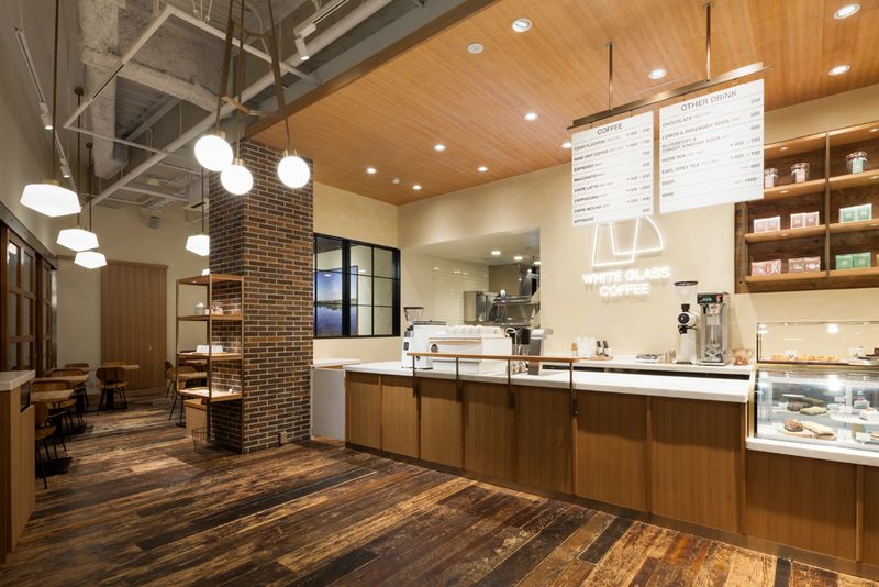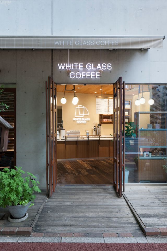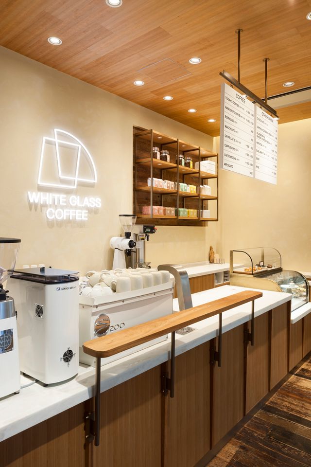 WHITE GLASS COFFEE 福岡は、専門学校Visionary arts建物内1階に路面店としてオープンしました。