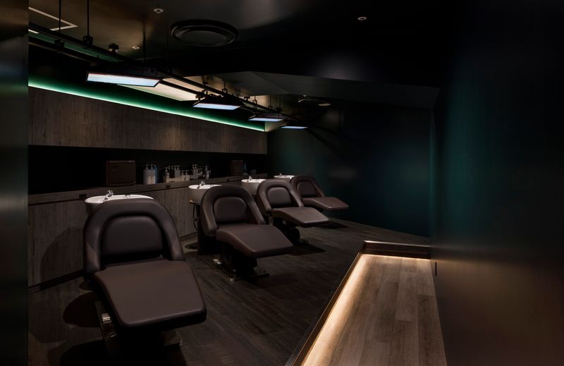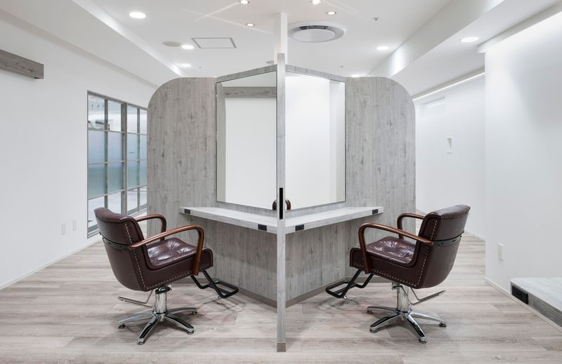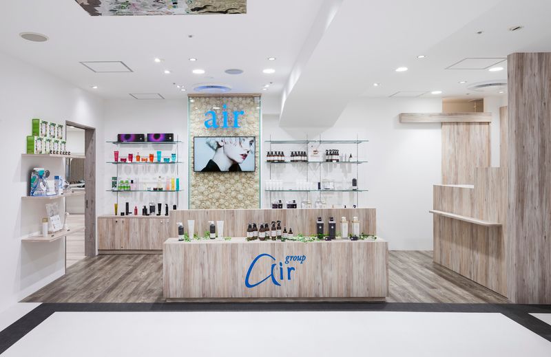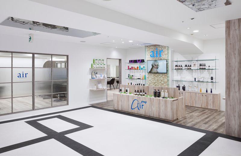 空間の構成は待合を兼ねたショップスペース、カットスペース、シャンプースペースの3つであり、そのうちのショップスペースとカットスペースは共用通路に向けて大きく開いている。ショップスペースにはair-groupが取り揃える美容商品が陳列されており、通りすがりにでも目に付き、商品を手に取ることができる。カットスペースは大きく開口した格子窓越しに広がっておりお店全体の雰囲気をみることができる。カットスペースの奥には暗転したシャンプースペースが現れる。暗転したシャンプースペースはアロマの香りとヒーリング効果のあるBGMが部屋いっぱいに広がって、お客様のリラックスを誘発する空間となっている。