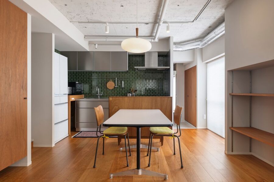 築50年ほどの50㎡に満たないマンションに家族3人が暮らしながら自身の仕事、妻のリモートワーク、そして子供がのびのび出来る空間をテーマとした自邸リノベーション計画です。